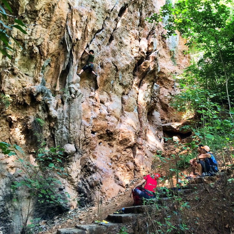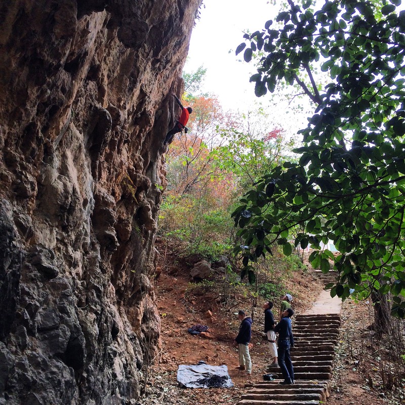宾川观音箐距离下关市区大概1小时左右的车程,下车后徒步15分钟即可到达岩场。