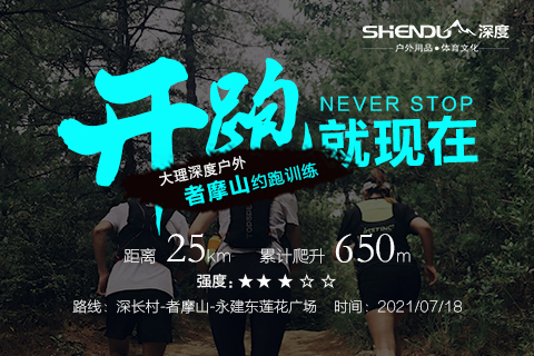 要求装备:越野背包5L+、越野跑鞋、跑步衣裤、 水2L+、午餐(高热量食品500g+)、雨衣、急救毯、求生哨、手机、充电宝、垃圾袋