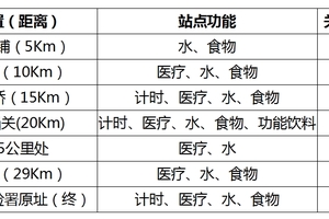 注:补给站提供水及食品;队员可根据自身情况携带个人喜好的补给食品。