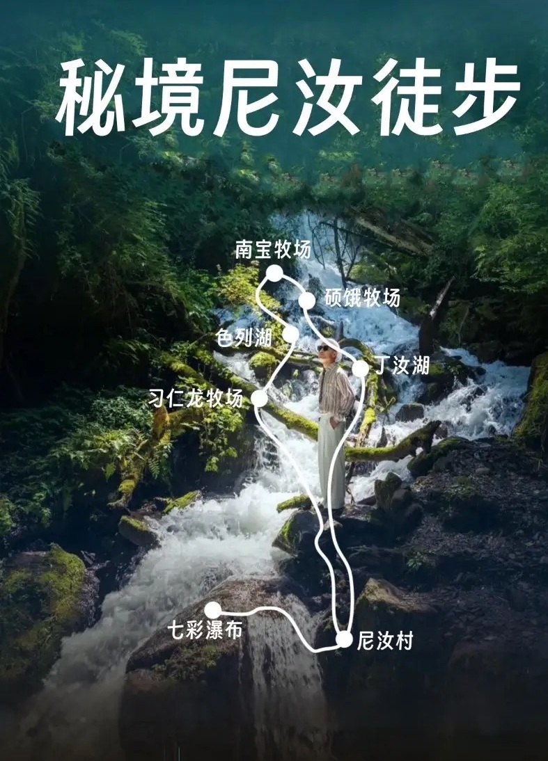尼汝-南宝牧场-色列湖-丁汝湖-七彩瀑布经典徒步4日行程计划