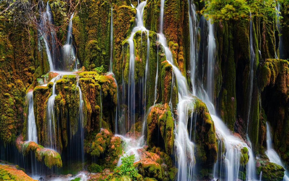 * 七彩瀑布: 由数十个大小不一的瀑布群组成,在阳光下常能看到彩虹,非常壮观。