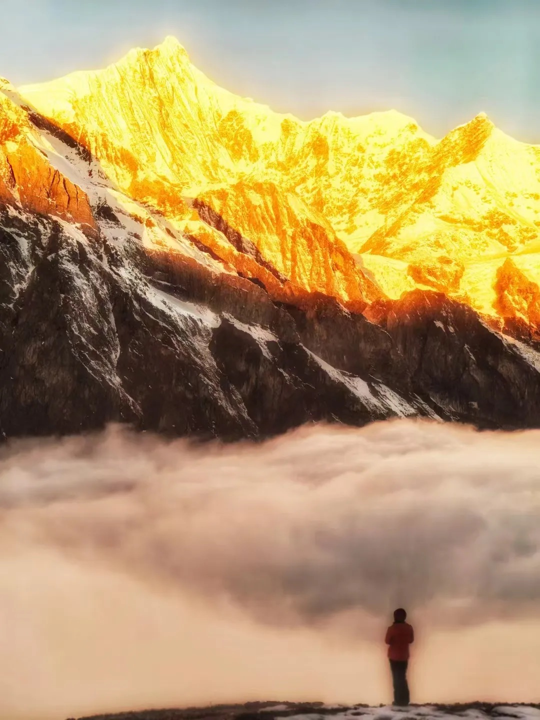 核心景观:山脊线徒步可360°观赏梅里十三峰,冬季可见完整雪峰群,只在视频中偶尔看到的传说中的虫草线,夏季高山草甸与云海交织。