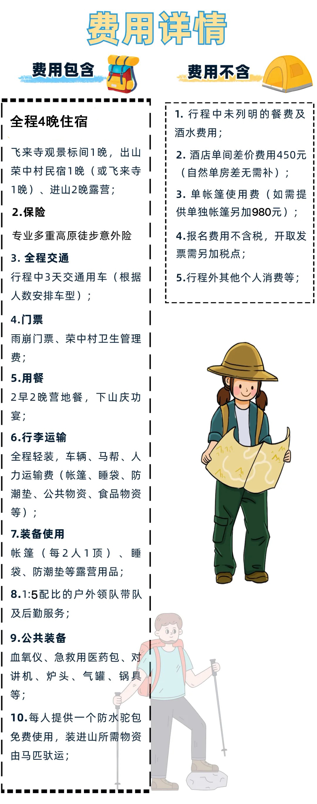 :全程约24公里,5天3夜行程,最高海拔4375米,累计爬升/下降各2000米+。